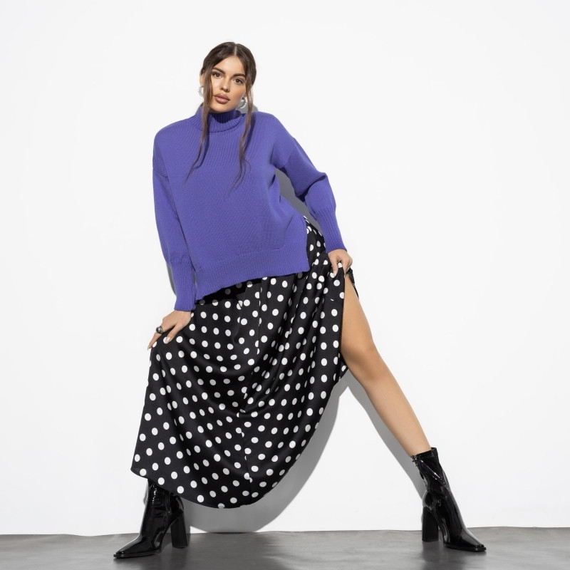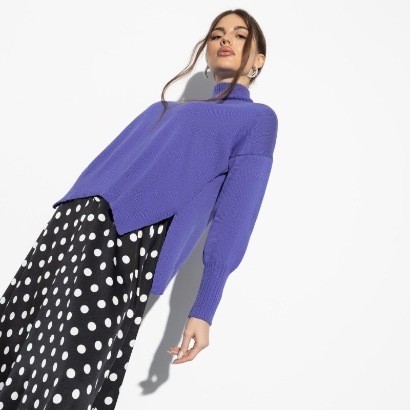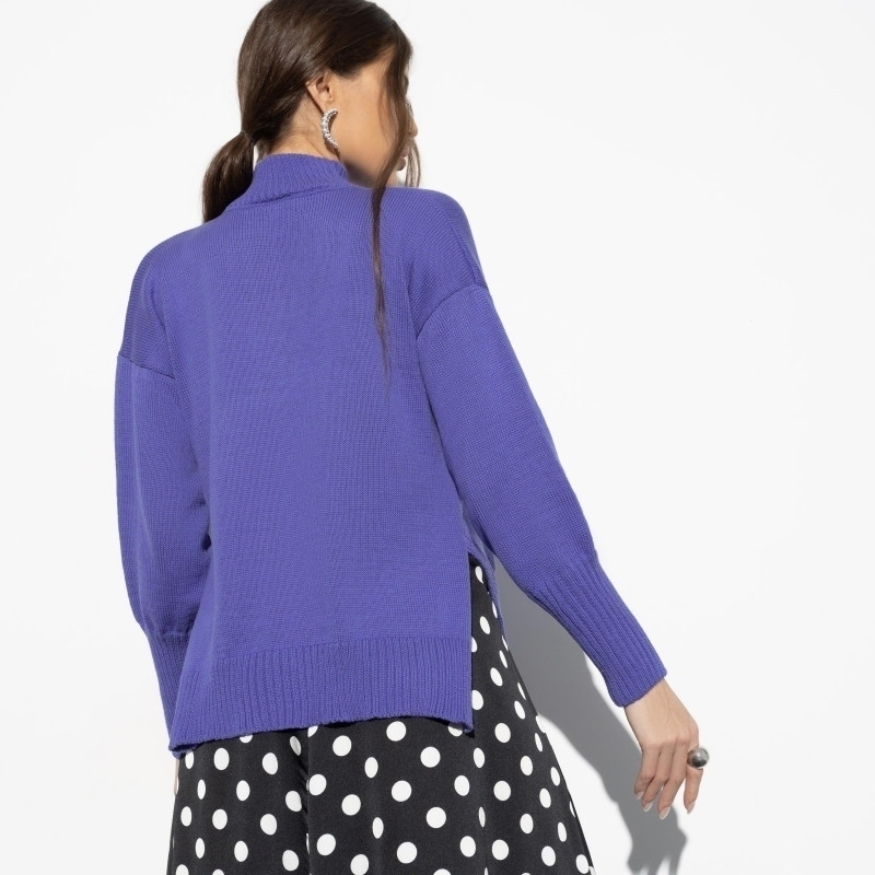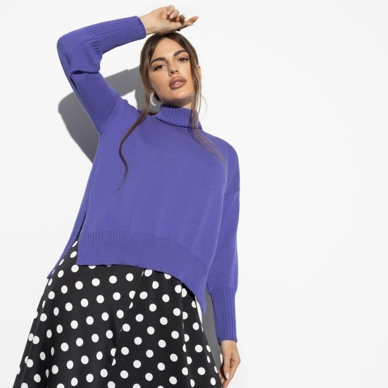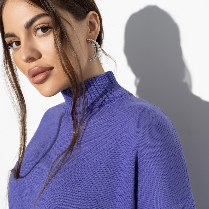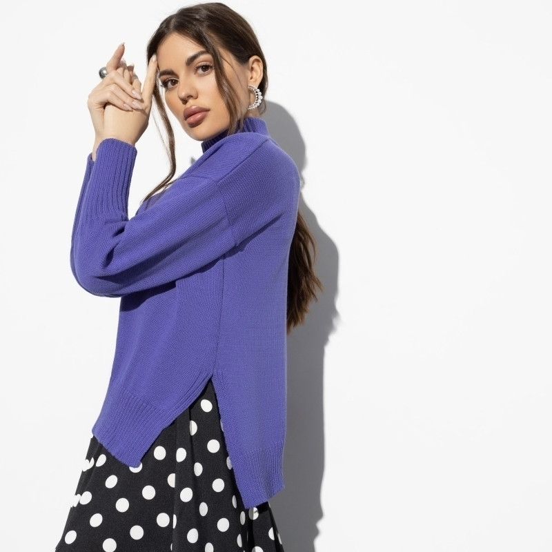 на фото модель оверсайз. Если нужен такой эффект, думаю, можно взять на один-два размера больше. если брать свой размер выглядит куцевато. хлипковат, достала из упаковки, был с затяжкой на спине, сразу сказала и показала сотруднице пункта выдачи. вернула, затяжки уже не было, кто-то, возможно, сочтёт за достоинство. видимо из-за такой жиденькой вязке затяжки легко появляются и так же легко их можно подтянуть обратно. не подошла и горловина, наверно, было бы лучше как на водолазке или свитере: повыше с подворотом, думаю лучше сочеталось с довольно высоким манжетом-резинкой на рукавах