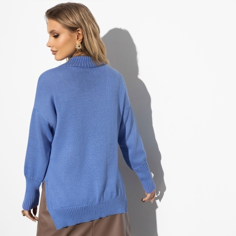 на фото модель оверсайз. Если нужен такой эффект, думаю, можно взять на один-два размера больше. если брать свой размер выглядит куцевато. хлипковат, достала из упаковки, был с затяжкой на спине, сразу сказала и показала сотруднице пункта выдачи. вернула, затяжки уже не было, кто-то, возможно, сочтёт за достоинство. видимо из-за такой жиденькой вязке затяжки легко появляются и так же легко их можно подтянуть обратно. не подошла и горловина, наверно, было бы лучше как на водолазке или свитере: повыше с подворотом, думаю лучше сочеталось с довольно высоким манжетом-резинкой на рукавах