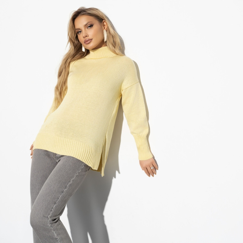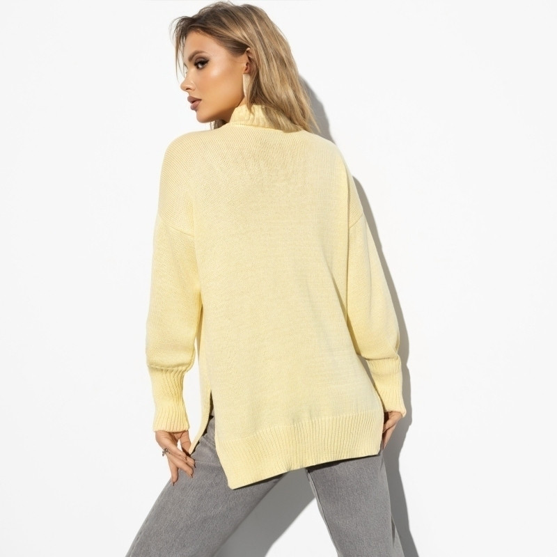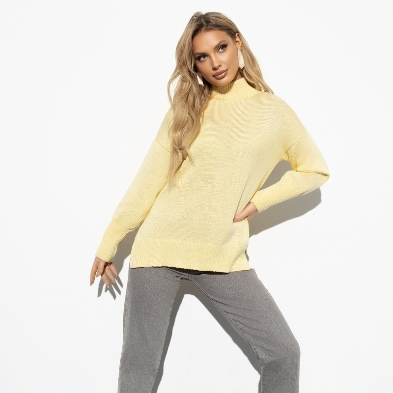 на фото модель оверсайз. Если нужен такой эффект, думаю, можно взять на один-два размера больше. если брать свой размер выглядит куцевато. хлипковат, достала из упаковки, был с затяжкой на спине, сразу сказала и показала сотруднице пункта выдачи. вернула, затяжки уже не было, кто-то, возможно, сочтёт за достоинство. видимо из-за такой жиденькой вязке затяжки легко появляются и так же легко их можно подтянуть обратно. не подошла и горловина, наверно, было бы лучше как на водолазке или свитере: повыше с подворотом, думаю лучше сочеталось с довольно высоким манжетом-резинкой на рукавах