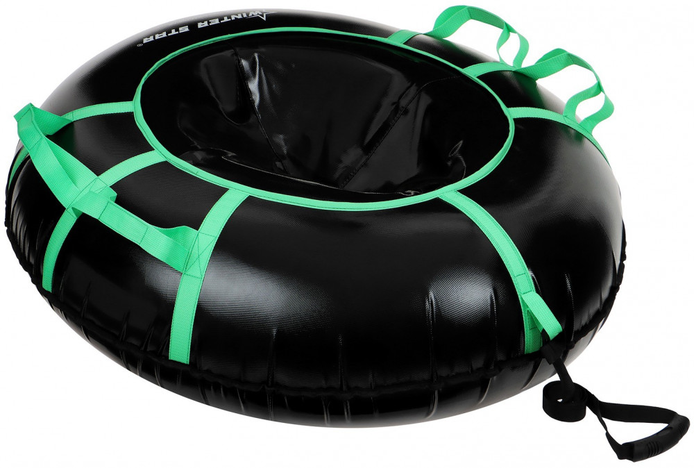 Дно тюбинга изготовлено из тентовой ткани, что гарантирует долгий срок службы и обеспечивает отличное скольжение. Снаряд оснащён безопасными ручками и молнией для быстрого доступа к камере. Имеет закрытую сердцевину — это исключает попадание снега внутрь.