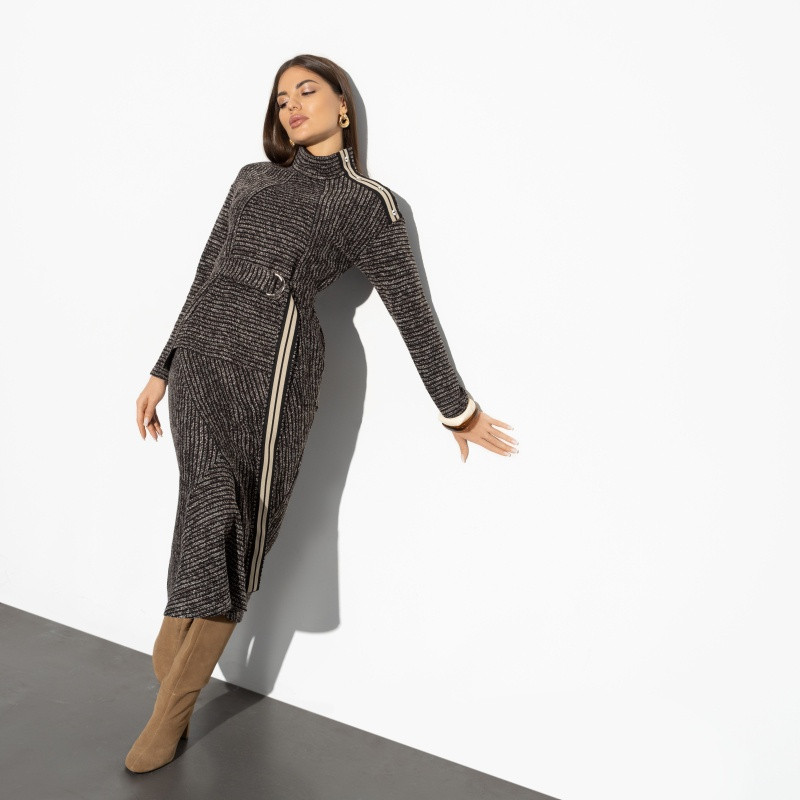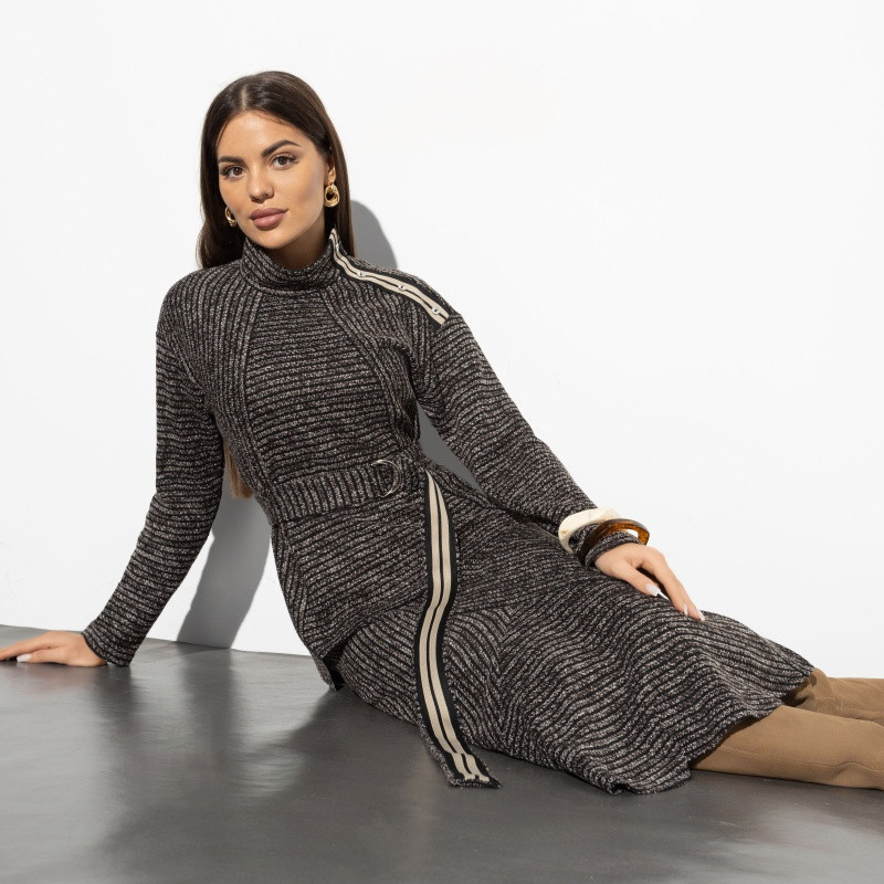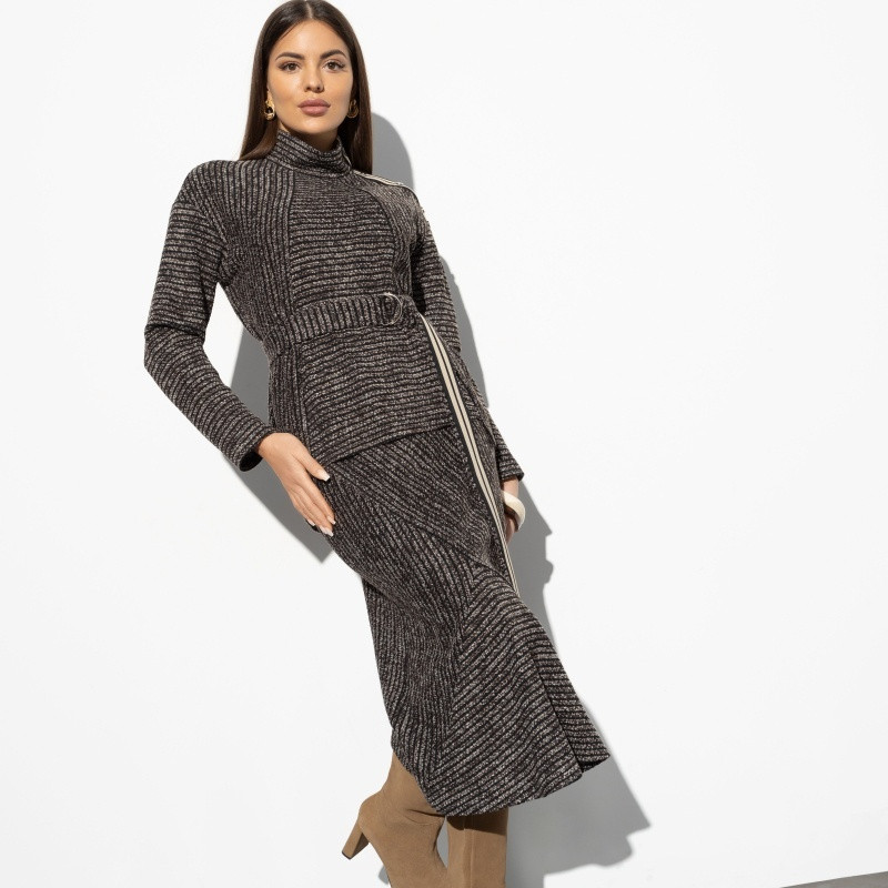 Charutti Комплект с юбкой женский «С высоты авторитета, браун, 2 в 1, с поясом»