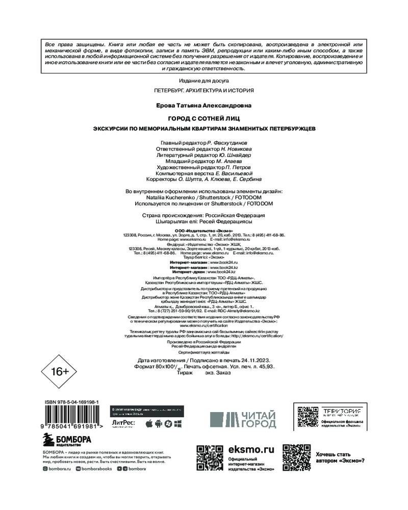 💳 Оплатить за товар можно при получении 🇰🇿 Есть бесплатная доставка по Казахстану от 1 дня 🎁 Копите бонусы с каждой покупки Серия: Петербург. Архитектура и история Подробный иллюстрированный гид по мемориальным квартирам Санкт-Петербурга. Вы побываете «в гостях» у Анны Ахматовой, Фёдора Достоевского, Иосифа Бродского, Архипа Куинджи и Григория Распутина. |