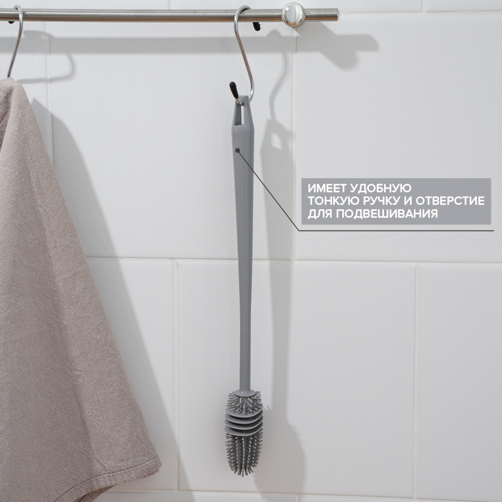 • ёршик имеет удобную тонкую ручку и отверстие для подвешивания, можно хранить в подвешенном положении;