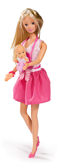 Коробка с набором пришла лопнувшая по краю. Кукла Штеффи в розовой майке и в бледно-сиреневых брючках. Лицо у куклы симпатичное. Одежда сшита из очень тонкого трикотина, сразу с затяжками. Волосы редко прошиты, пролысины сильно видны. Волосы лезут и выпадают, спутанные, до колен. Эти волосы были зачем-то зашиты в полоску прозрачного пластика. Ноги и руки из пластика, крутятся-вертятся вперёд-назад и немного в стороны. Кукла имеет глубокие царапины на пластиковых руках. Коляска обтянута тем же тонким трикотином бледно-сиреневым. Тканью обтянута, этот чехол легко сползает. Постельки нет. Два пупсика - плохо отштампованы, головы резиновые, грубые, сварные швы на ручках-ножках, пластик имеет глубокие царапины около швов. Лица у пупсиков хорошие, но неаккуратно накрашены. Слинга нет, а на коробке написано, что есть в комплекте. У одного пупса ползунки бледно-сиреневые из трикотина, у другого пупса ползунки розовые. Рост каждого пупса 7,5 см. Аксессуары для пупса очень мелкие, цвет розовый. Кукла и пупсики сделаны из твёрдого, прочного пластика, но расцарапанные на ручках-ножках и плохо отштампованные, есть неровности необрезанные. Всё похоже издалека на последнее фото набора в коробке, где кукла в брюках, но только краски цветовой гаммы значительно побледнее. Набор таких денег не стоит. Качество низкое, сделано в Китае.