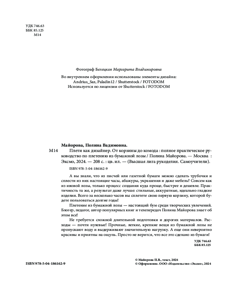 | Плети как дизайнер. От корзины до комода. Полное практическое руководство по плетению из бумажной лозы Полина Вадимовна Майорова +237 (бонусов)