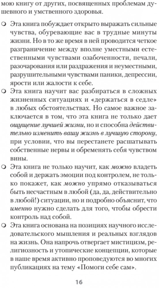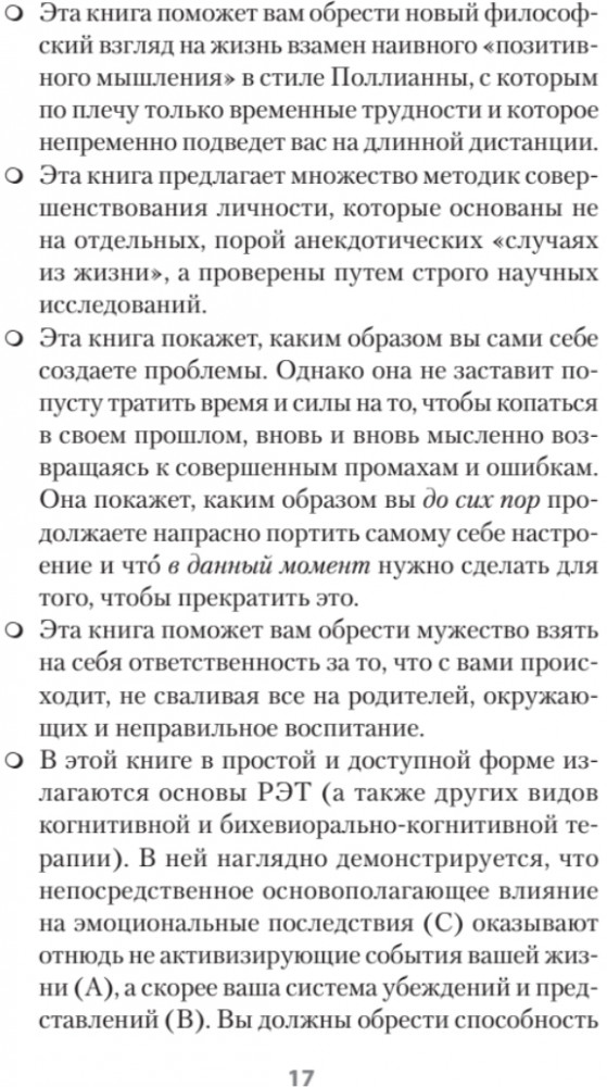 💳 Оплатить за товар можно при получении 🇰🇿 Есть бесплатная доставка по Казахстану от 1 дня 🎁 Копите бонусы с каждой покупки Серия: #экопокет Страдаете, что жизнь складывается не так, как бы вам хотелось? Время уходит, а вы так и не нашли причину своего хронического несчастья? Вы злитесь и впадаете в уныние? Альбер Эллис, автор рационально-эмоциональной поведенческой терапии, предлагает способы самопомощи, главная задача которых — избавиться от привычки страдать! Страсть к самоистязанию — самая опасная из зависимостей, она лишает радости миллионы людей. В этой книге собраны методики, основанные на научных исследованиях и подтвержденные опытом ведущих психотерапевтов, которые помогут Вам в любой жизненной ситуации выбирать счастье, а не жалость к себе. Вы забудете о своем «ужасном» прошлом, буквально перепишите эмоции и навсегда откажетесь от роли жертвы обстоятельств, встав у руля своей жизни. |