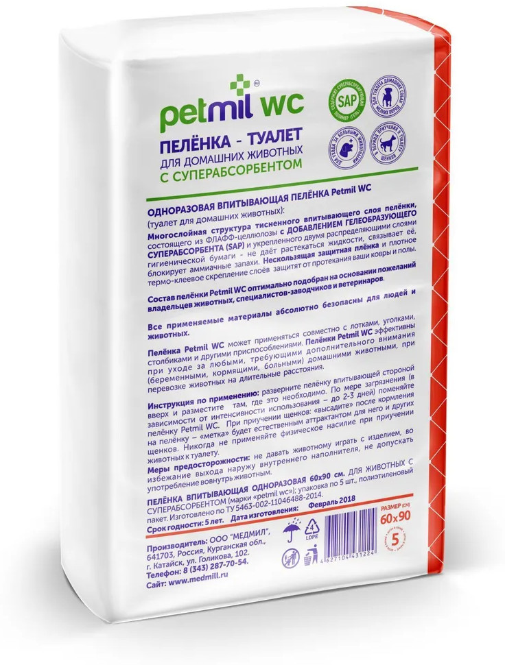 Petmil Пеленка впитывающая одноразовая с суперабсорбентом