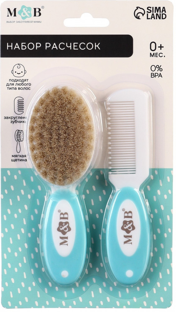 Расческа-щетка с мягкой, натуральной щетиной и удобная расческа с закругленными зубчиками предназначены для малышей с первых дней жизни. Мягкая пушистая щетка имеет удобную эргономичную ручку, улучшает кровообращение кожи головы, не царапая её. Нежный массаж расслабляет и успокаивает перед сном, а стимуляция волосяных луковиц ускоряет рост первых волос малыша. Щетка с мягким ворсом позволит пригладить волосики и придать им аккуратный вид. А с помощью расчески с частыми закругленными зубчиками удобно расчесывать запутавшиеся и скатавшиеся волосы. Изделия изготовлены из безопасного материала — не содержат бисфенол — А.