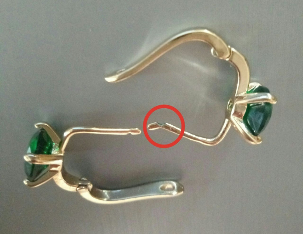 При первом же застёгивании верхняя часть застёжки надломилась и теперь использовать серьги невозможно. Хотелось использовать летом с лёгкими летними нарядами, но теперь это невозможно.