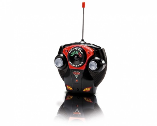 На пульте два рычага по бокам, один управляет вправо-влево, а другой вперед-назад с дизайном в виде колес.