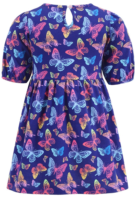 Платье для девочки выполнено из кулира — легкого хлопкового полотна. Изделие с рукавами-фонариками, собранными по низу на эластичную тесьму, юбочка присборена по линии талии, застежка на пуговицу по спинке. Отличный выбор для маленьких принцесс!