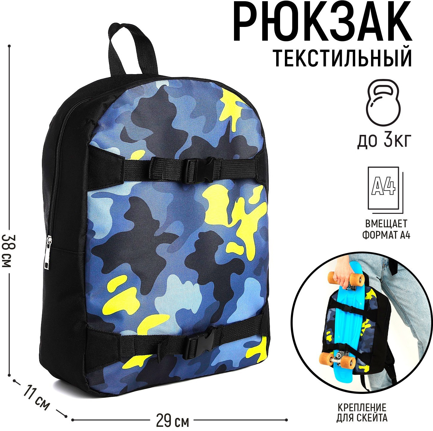 NAZAMOK Рюкзак с креплением для скейтборда «Камуфляж»