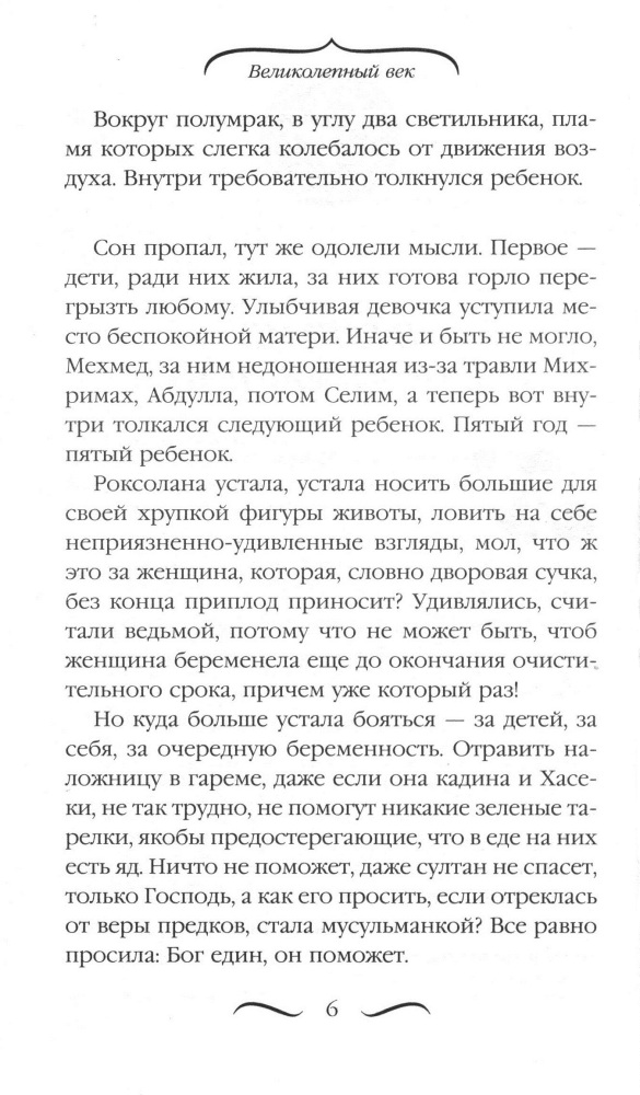 В данный момент этот товар отсутствует в продаже. Возможно, у нас найдется аналогичный или похожий товар здесь. Серия: Великолепный век «Как бы ни был роскошен, чувственен и популярен телесериал «Великолепный век», он отражает лишь турецкую точку зрения и склонен демонизировать легендарную Роксолану, представляя ее чуть ли не исчадием ада. Хотите увидеть блистательную и жестокую эпоху султана Сулеймана Великолепного глазами его славянской жены и узнать, как всё было на самом деле? Читайте этот любовно-исторический роман, который проведет вас в запретный мир гарема и через лабиринты дворцовых интриг, ставка в которых — больше, чем жизнь.
