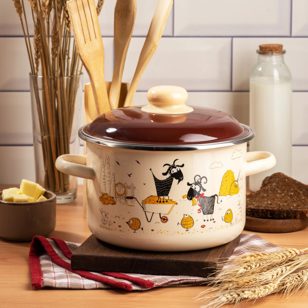 💳 Оплатить за товар можно при получении 🇰🇿 Есть бесплатная доставка по Казахстану от 1 дня 🎁 Копите бонусы с каждой покупки Серия: Подворье Встречайте новую коллекцию эмалированной посуды «Подворье» ТМ «Appetite»! Классический корпус в сочетании с юмористическими зарисовками из жизни домашних животных понравится и взрослым, и детям. Вас ждет увлекательное путешествие в мир животных, забавные авторские сюжеты уникальны для каждого изделия! Посуда экологична, не вступает в реакцию с пищевыми кислотами и щелочами, тем самым сохраняется вкус пищи, в нее не попадают вредные для здоровья человека соединения. В кастрюле можно не только готовить, но и безопасно хранить пищу. Кастрюля также подходит для заготовок и маринования, для шашлыков, для супов, для квашения — это универсальная посуда на кухне! |