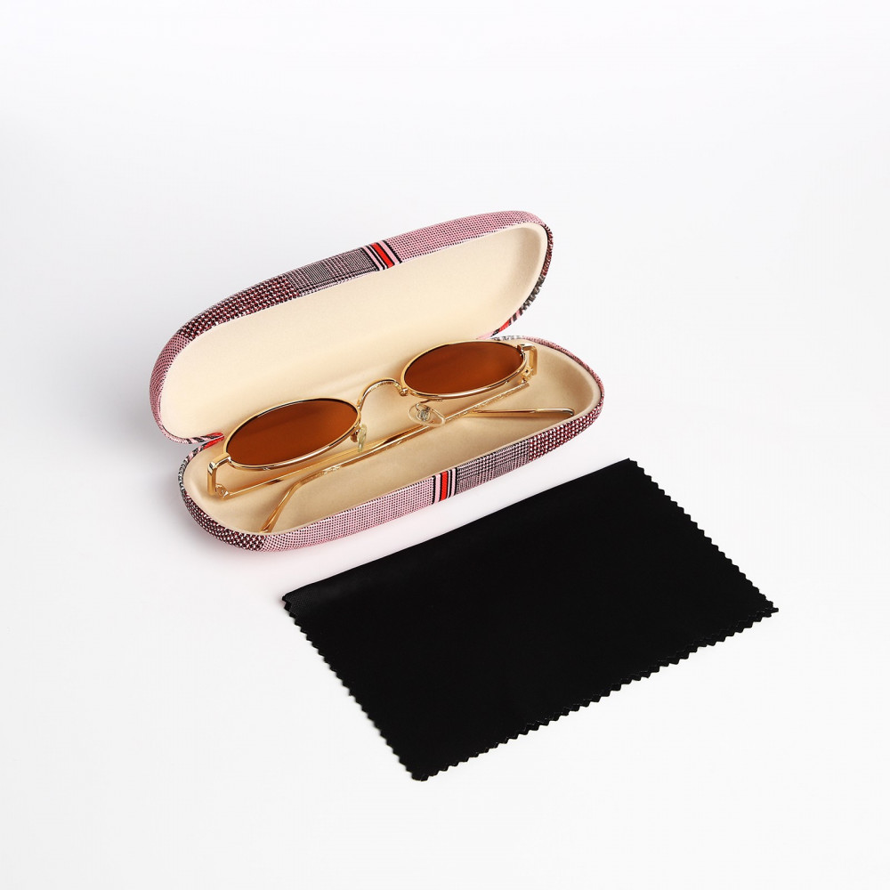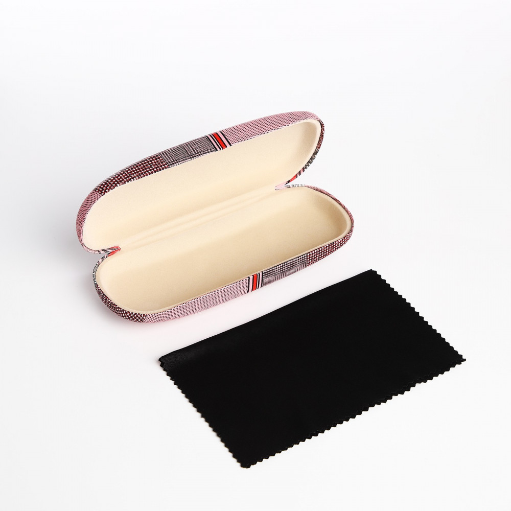 Стандартный футляр , смотрится красиво, очки поместились, а то для некоторых моделей очков подходят далеко не все футляры .
