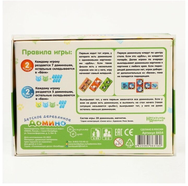 💳 Оплатить за товар можно при получении 🇰🇿 Есть бесплатная доставка по Казахстану 🎁 Копите бонусы с каждой покупки Детское деревянное «Нескучное Домино» — полезная развивающая игрушка для малышей и детей постарше! Настольные игры для детей, такие как Домино познакомят ребенка с героями сказок. Доминошки крупного размера (70 × 35 мм) прекрасно подойдут даже для самых маленьких игроков. Малышу удобно держать такую фишку. Рисунки на ней яркие и большие. Прямая печать на доминошках делает их долговечными в использовании. Играть можно не только дома, но и эффективно использовать для занятий в детском саду, набор удобно брать с собой в путешествие или дорогу. Развивающие игрушки для детей такие как домино развивает целый спектр навыков: моторику, логику, воображение, а также изучает окружающий мир. |