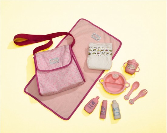 В наборе есть сумочка для того, чтобы туда положить все по уходу за пупсом.