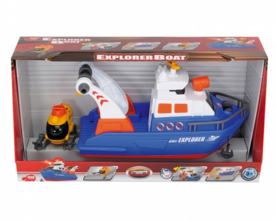 Dickie Исследовательское судно со световыми и звуковыми эффектамиВ данный момент этот товар отсутствует в продаже. Возможно, у нас найдется аналогичный или похожий товар здесь. Исследовательский катер с субмариной для исследованиях подводных глубин. |