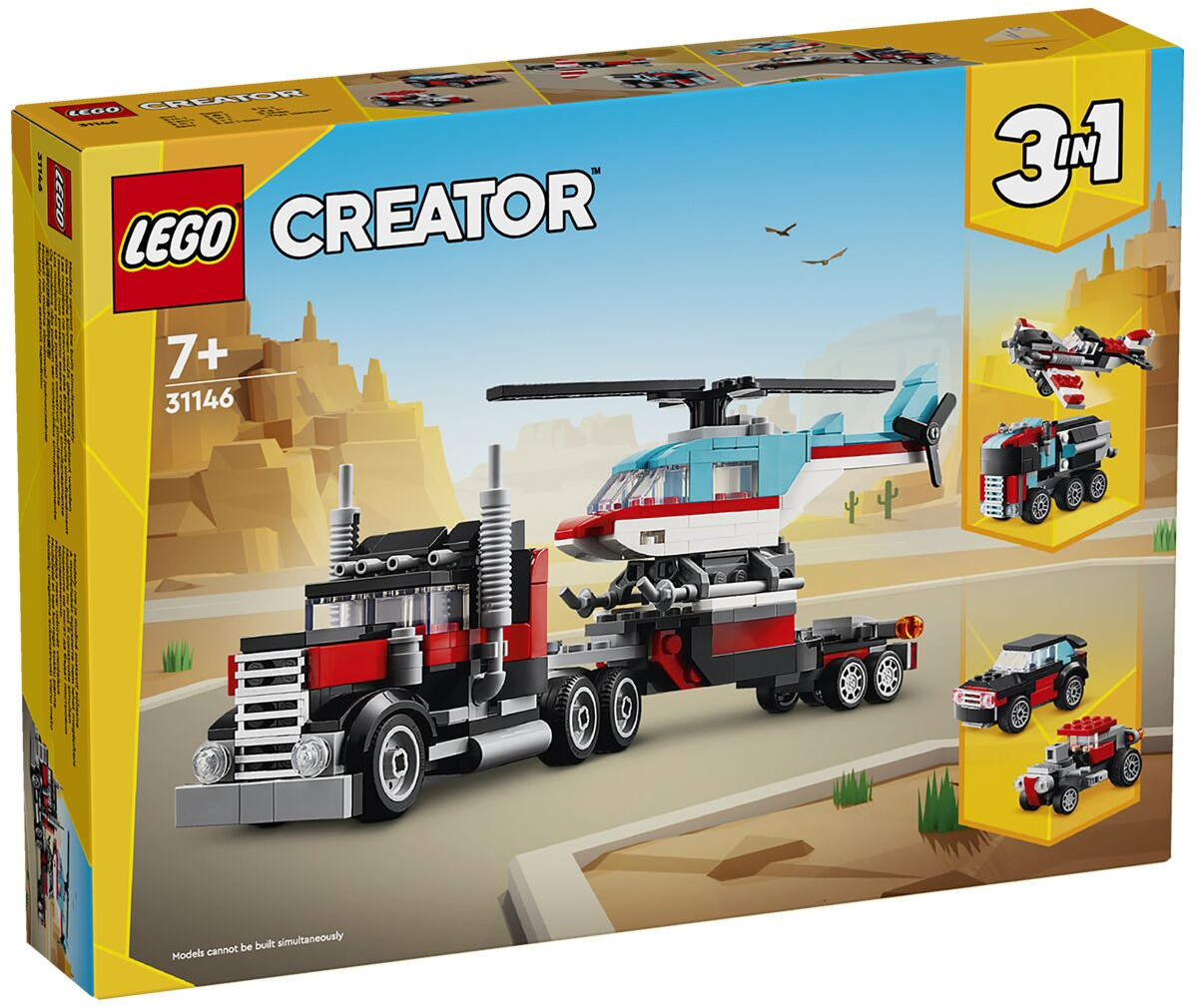 LEGO (ЛЕГО) Конструктор Creator 31146 Бортовой грузовик с вертолетом. Flatbed Truck with HelicopterВ данный момент этот товар отсутствует в продаже. Возможно, у нас найдется аналогичный или похожий товар здесь. Серия: LEGO Creator Стремительные приключения ждут детей в возрасте от 7 лет и старше с игровым набором серии Creator «Бортовой грузовик с вертолетом». Они могут использовать 270 деталей набора 3 в 1, чтобы собрать классную игрушку грузовик-транспортер с движущимися колесами, который может перевозить на прицепе вертолет с движущимися лопастями несущего винта. С помощью конструктора 3 в 1 дети могут собрать 3 разных набора игрушек-транспортных средств, содержащих 2 отдельных транспортных средства. У них есть шанс собрать бортовой грузовик с вертолетом, переделать его в игрушечный самолет с пропеллером и бензовоз с движущимися колесами, сделать игрушечный автомобиль для гонок хот род и внедорожник или использовать кирпичи для создания собственных транспортных средств. |