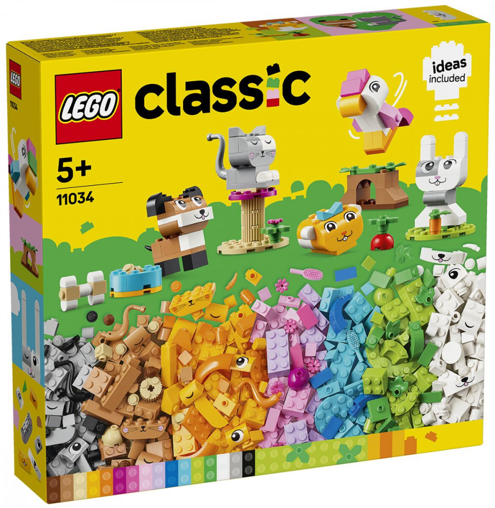 Любители животных в возрасте от 5 лет и старше могут удовлетворить свою страсть к домашним животным с помощью этого креативного набора для сборки животных. LEGO® Classic Creative Pets (11034) — это вдохновляющее сочетание кубиков для сборки животных с простыми руководствами по созданию красочных игрушек с животными, которые можно быстро собрать. Это отличный способ стимулировать творческое конструирование детей. С помощью 450 кубиков LEGO, в том числе специальных деталей с глазами и ртами, а также простых пошаговых инструкций, дети смогут собрать собаку из миски и кости, кошку на подставке, хомяка с яблоком, кролика с морковь и птица на жердочке. Затем, используя включенные в набор предложения по альтернативным цветам, формам и функциям, дети смогут воссоздать своих питомцев по-новому и весело. По мере развития творческих навыков дети смогут воплощать в жизнь свои собственные идеи. В комплект входит руководство, содержащее 10 идей, которые помогут начать увлекательное занятие по сборке. Игрушки LEGO Classic полны идей и вдохновения и позволяют родителям делиться со своими детьми увлекательными сборками и этапами развития.