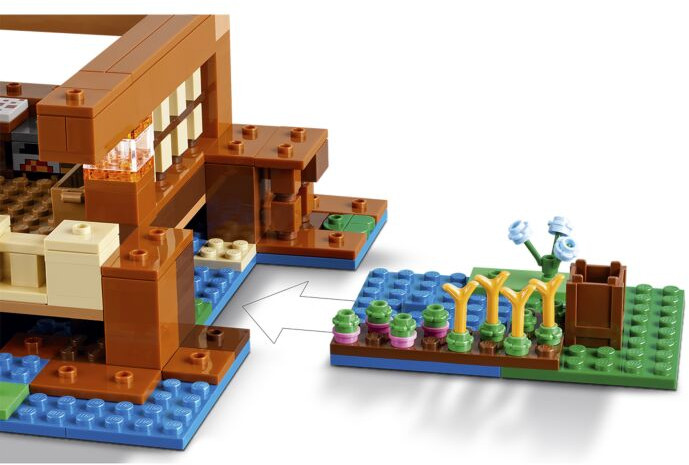 • игрушка-животное LEGO® Minecraft®. Популярные аксессуары Minecraft включают в себя мебель, еду, урожай сельскохозяйственных культур, верстак, печь, сундук, удочку (и рыбу!), игрушечную лодку из темного дуба и трезубец;