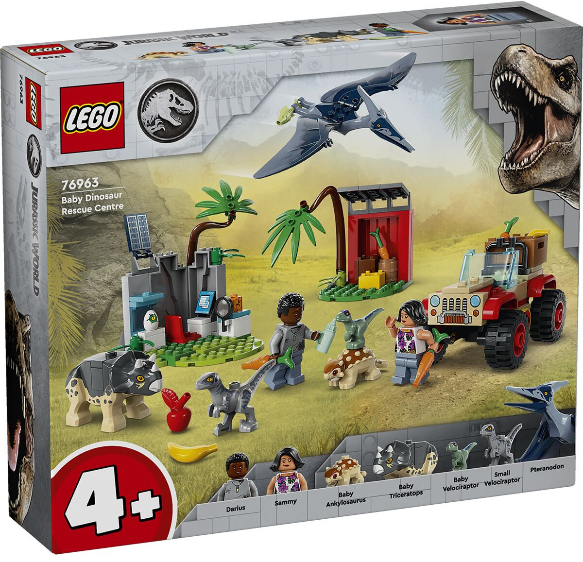 LEGO (ЛЕГО) Конструктор Jurassic World 76963 Центр спасения детенышей динозавров. Baby Dinosaur Rescue CenterВ данный момент этот товар отсутствует в продаже. Возможно, у нас найдется аналогичный или похожий товар здесь. Серия: LEGO Jurassic World Юные поклонники в возрасте от 4 лет могут заботиться о детенышах динозавров и играть с ними, одновременно учась строить с помощью этого набора LEGO Jurassic World «Центр спасения детенышей динозавров». Он включает в себя внедорожник и исследовательскую зону со стеной пещеры, оба с элементами Starter Brick, а также станцию кормления. Две минифигурки, фигурки детенышей Анкилозавра, Трицератопса и Велоцираптора, а также маленькие игрушечные фигурки динозавров для детей Велоцираптора и взрослого птеранодона помогут быстро начать игру. |