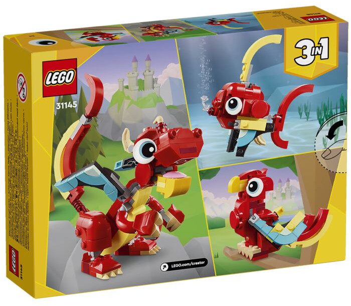 • три волшебных животных в одном наборе — с набором LEGO® Creator «Красный дракон» дети от шести лет и старше могут собирать и перестраивать три разные красочные модели из одних и тех же кубиков;