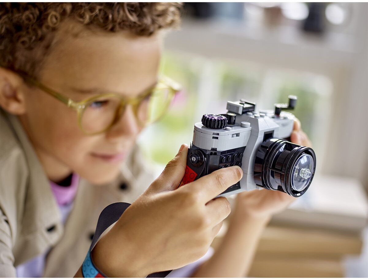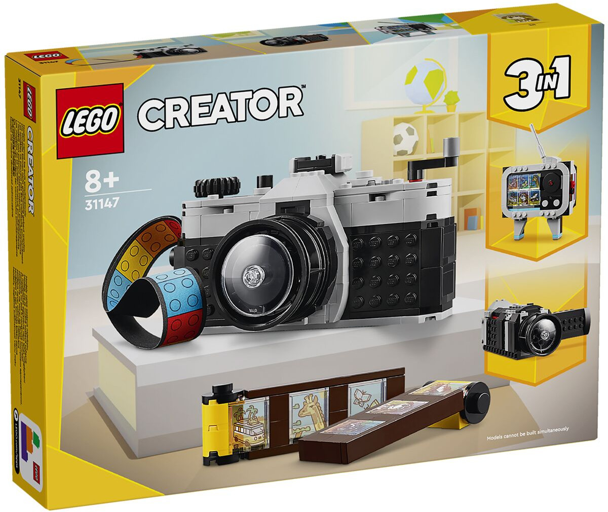 • три ретро-игрушки в одной коробке — дети от 8 лет и старше могут собрать и восстановить три разные модели культовых устройств, используя одни и те же кубики из набора LEGO® Creator Retro Camera.