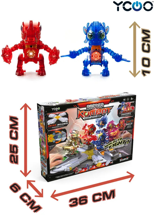 YCOO Конструктор «Биопод Комбат Делюкс»В данный момент этот товар отсутствует в продаже. Возможно, у нас найдется аналогичный или похожий товар здесь. «Биопод Комбат Делюкс» — это захватывающий конструктор и коллекционная игрушка, которая позволит вашему ребенку погрузиться в увлекательный мир боевых сражений. В наборе сразу 2 персонажа — боевой робот и его соперник, а также большая арена для сражений. Для сборки каждого персонажа в комплект входит по 20 деталей. Малышу предстоит собрать конструктор, пошагово соединяя детали, что способствуют развитию творческого мышления, усидчивости, мелкой моторики рук и пространственного мышления. Как только сборка будет завершена, начнется захватывающее сражение. Установи фигурку на специальную платформу, с помощью которой герои активируются и выполняют движения. Биоподы умеют бить в грудь и шевелить головой, что добавляет динамику сражениям. Биопод Комбат Делюкс набор — отличный выбор для развлечения и развития вашего маленького воина. Игрушка позволит ребёнку почувствовать себя настоящим командиром и насладиться увлекательными боевыми сценариями. |