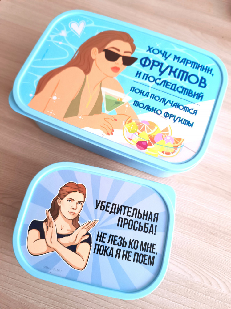 Ланч бокс хороший, но маленький, на пару бутербродов. Прилагаю фотографию с другим контейнером из этой серии. Купила из-за надписи, прикольная, для дочери. Пластик крепкий, качественный, без специфического запаха. Крышка закрывается очень хорошо, плотно.