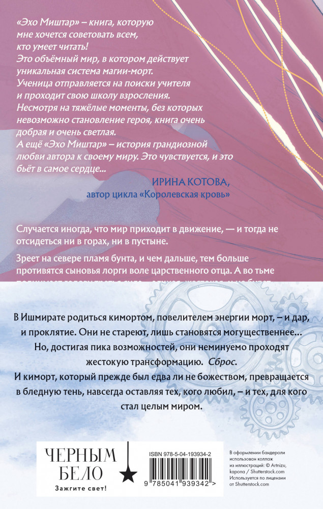 Серия: Охотники за мирами Дилогия «ЭхоМиштар» Софьи Ролдугиной в одном комплекте! Удивительное ориентальное фэнтези в редком жанре эфирпанка. В истории две сюжетные линии: киморта Алара, который потерял память и силы, и его юной ученицы Фог, которая бежит из столицы на поиски учителя. Удивительный авторский мир с множеством продуманных деталей, делающих мир объемным и живым. Издания дополнены иллюстрациями художницы HAIME и картой на форзаце от художницы Aaerynn. А в «Эхо Миштар. Вершины и пропасти» вы найдете сюжетную открытку от художницы Anne Svart! |