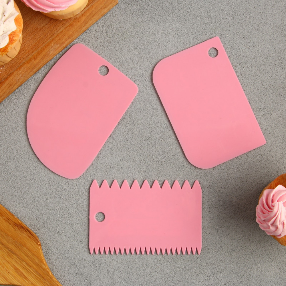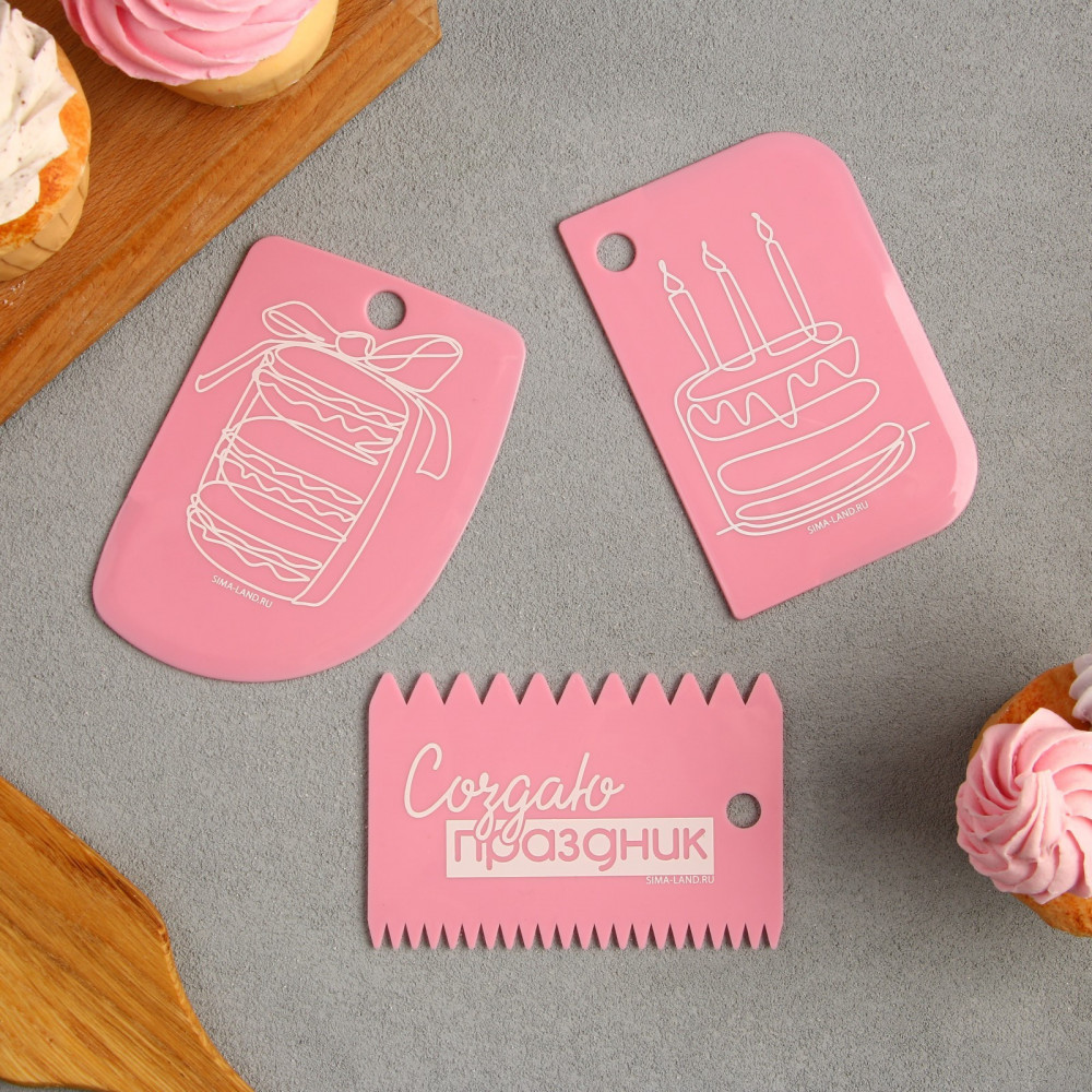 Размеры шпателей: 1,5 × 8 см, 11,2 × 6,5 см, 10 × 7 см.