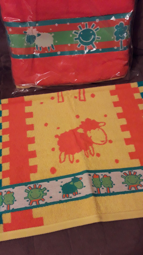 Очень понравились полотенца, заказывала в паре с банным. Яркое, весёлое, мягкое. Вживую ярче, чем на фото. Покупала в подарок. Спасибо.