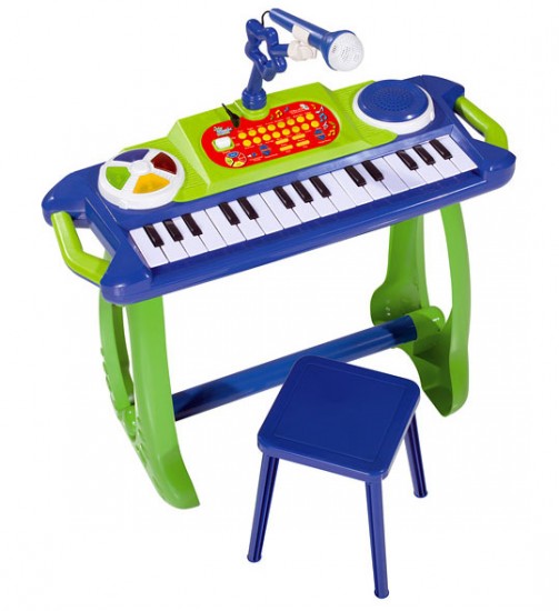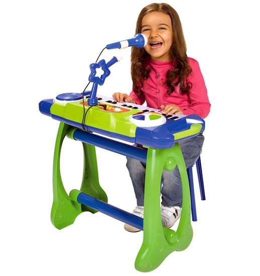 Отличный синтезатор приобрела для ребенка 2,5 лет. Мой мальчик в восторге, поет в микрофон играет на клавишах. Синтезатор довольно таки навороченный можно и просто слушать музыку и различными инструментами играть а так же самому собирать мелодии. Думаю эта вещь прослужит долго и по качеству и по интересам ребенка. Стульчик возможно так же использовать для разных целей.