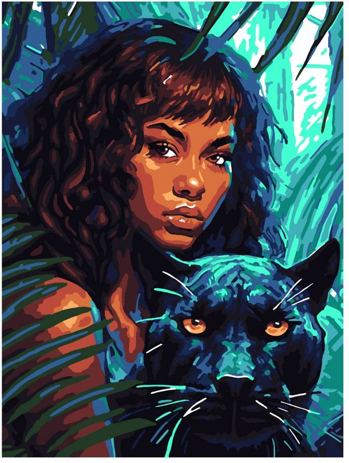 Lori Картина по номерам «Девушка с пантерой»-30% +80 картинка шикарная эффектная