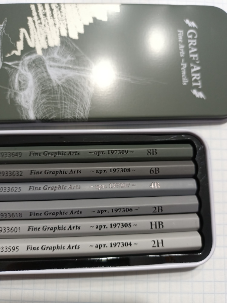 Больше напоминает уголь,но при этом это тот же карандашный грифель. По учебе делаю не академические зарисовки в мягкой твердости,матовыми рисовать приятнее и цвет будто более насыщенный.