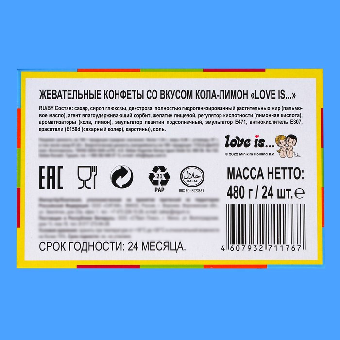 Love is Конфеты жевательные «Кола-лимон»В данный момент этот товар отсутствует в продаже. Возможно, у нас найдется аналогичный или похожий товар здесь. Серия: 14 Февраля Жевательные конфеты с любимыми персонажами — новый формат всем знакомого вкуса. Это отличный мини-подарок своей второй половинке, ведь яркие вкладыши с надписями и рисунками способны растопить сердце и порадовать каждого. Яркий и сочный вкус колы и лимона мгновенно взбодрит вкусом и порадует сладостью. |