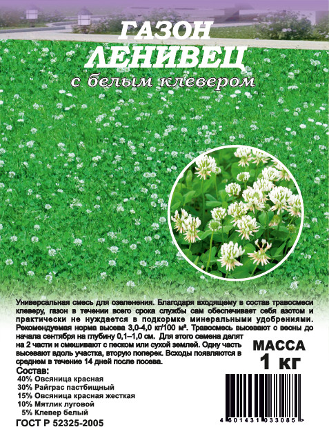 Гавриш Газон «Ленивец с белым клевером»+65 хорошая всхожесть хорошая упаковка