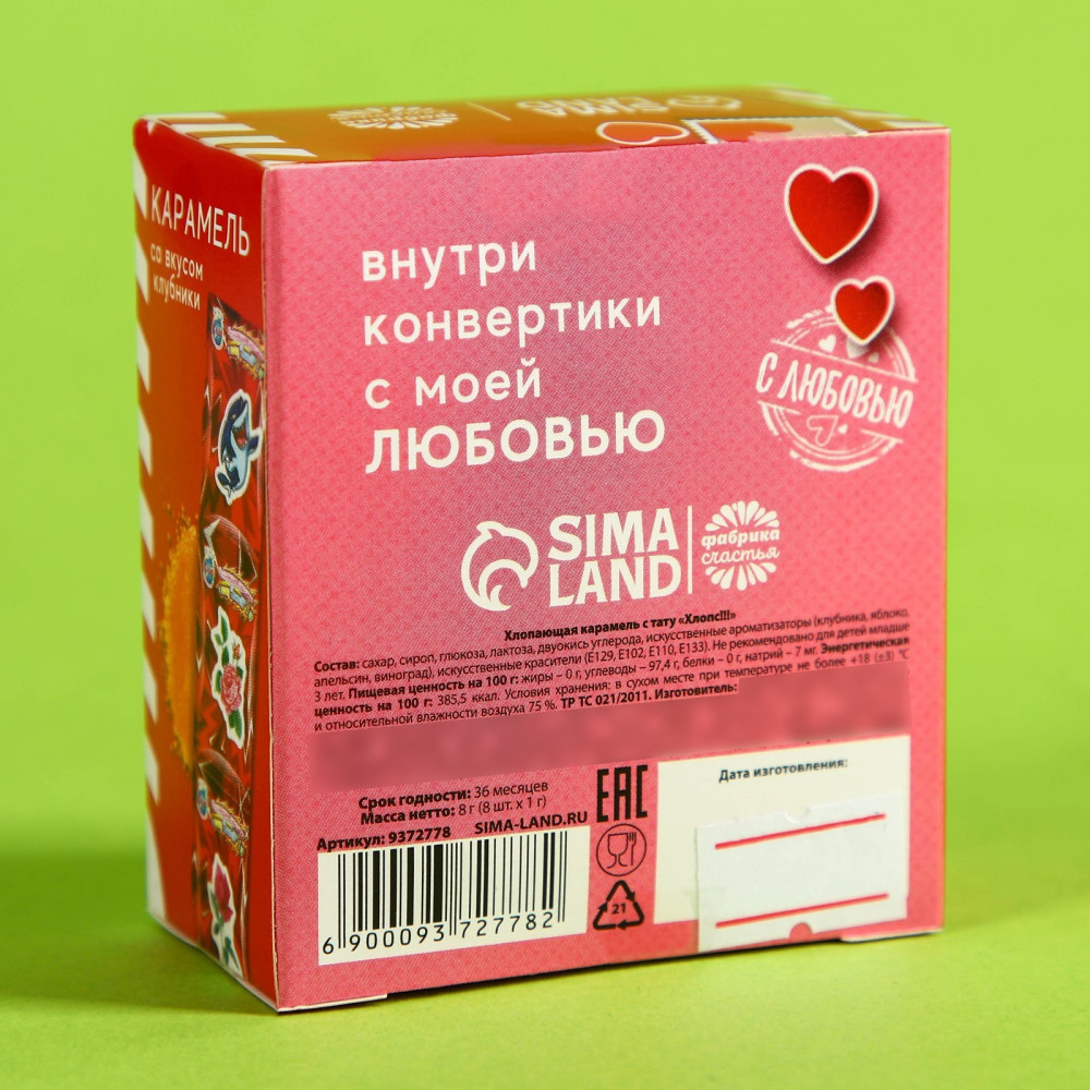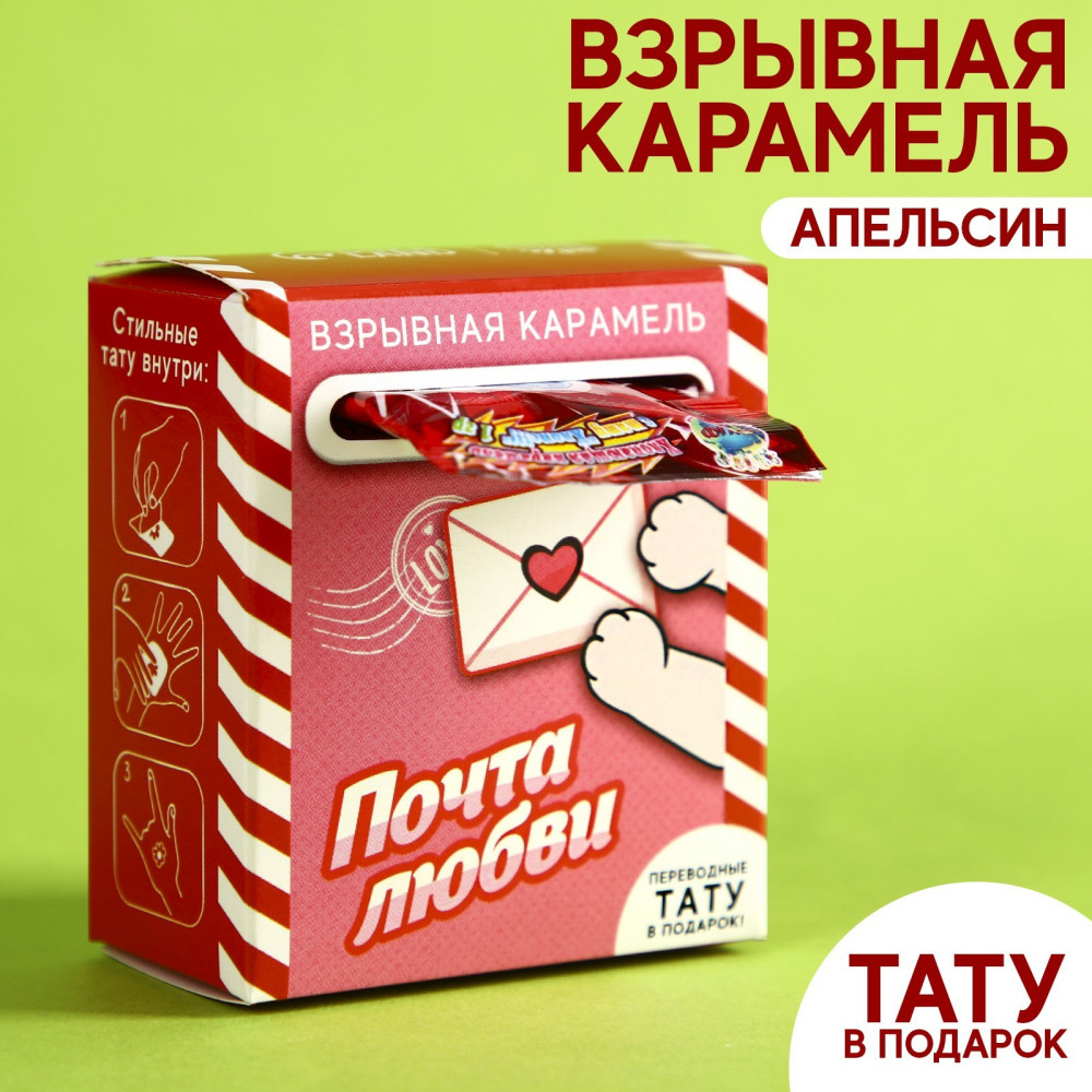 Фабрика счастья Карамель взрывная «Почта любви»В данный момент этот товар отсутствует в продаже. Возможно, у нас найдется аналогичный или похожий товар здесь. Серия: 14 Февраля Взрывная карамель — это не только вкусное, но и эффектное лакомство. Она состоит из мелких карамельных гранул, которые лопаются на языке, создавая ощущение мини-взрыва. |