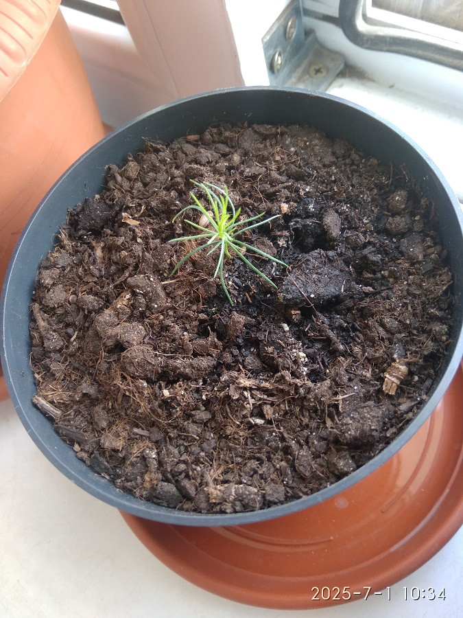 Взошли, потихоньку растут. Хоть совсем маленькие еще, но старшие иголочки уже имеют голубоватый цвет.