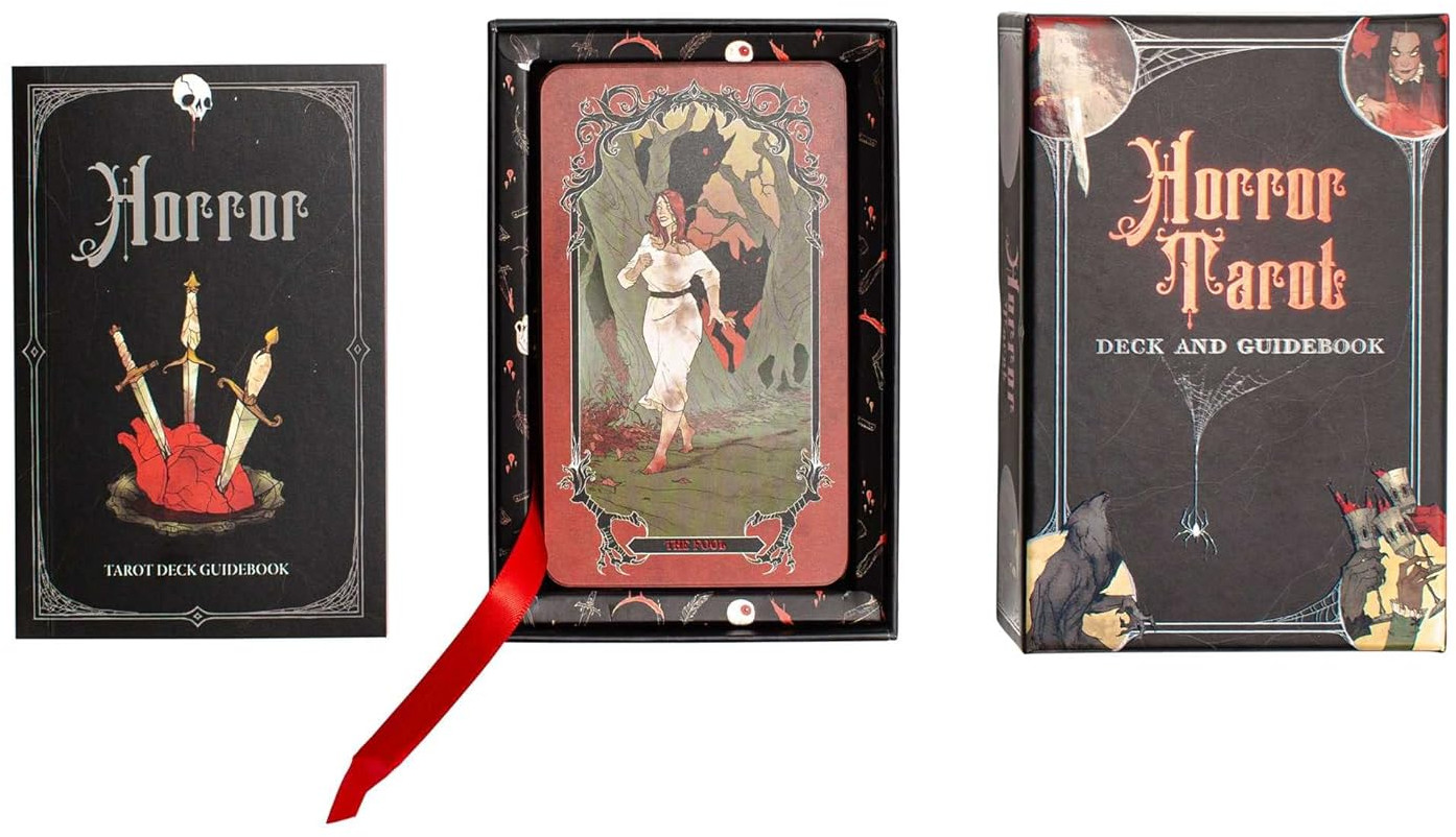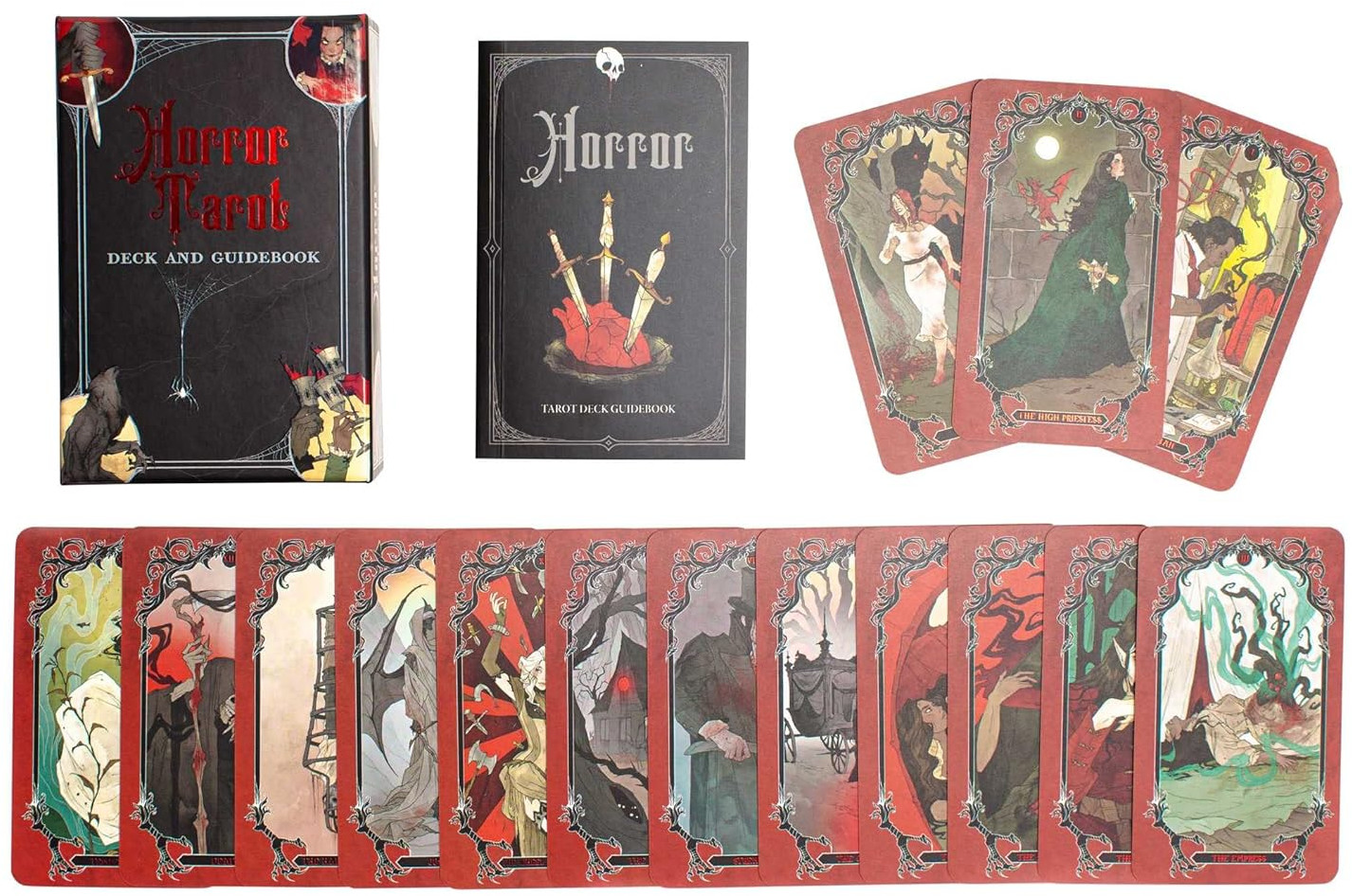 Add an element of horror to your tarot experience with this spooky and unique take on the traditional 78-card tarot deck. This dark tarot set features iconic characters from classic horror literature, films, and beyond in gorgeous and original illustrations. Featuring both major and minor arcana, the set also comes with a helpful guidebook explaining each card’s meaning, as well as simple instructions for easy readings. Packaged in a sturdy, decorative gift box, this terrifying collectible tarot deck is the perfect gift for the horror fan or tarot enthusiast.
