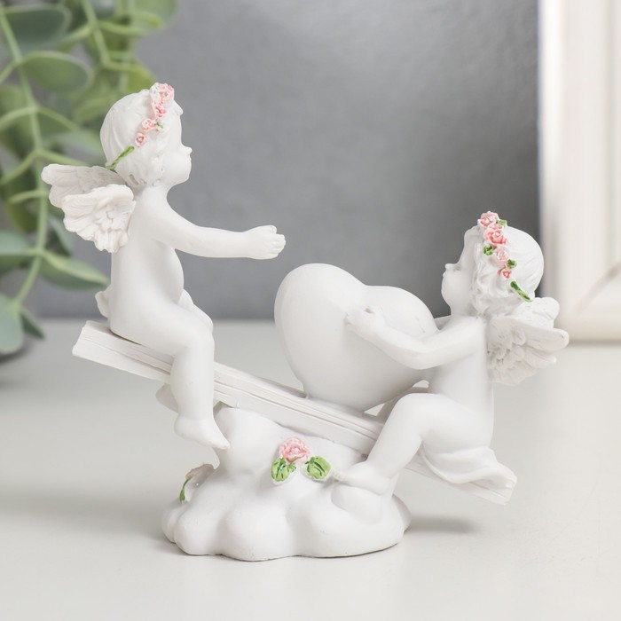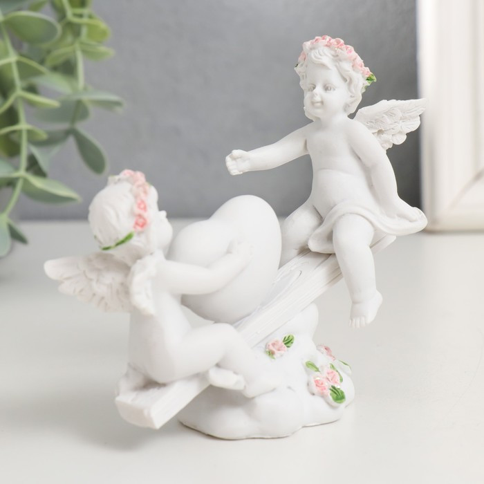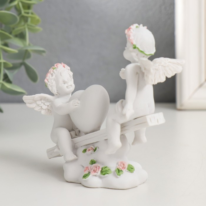 Фигурка декоративная «Ангелочки в розовых веночках качаются на качалке»-40% +36