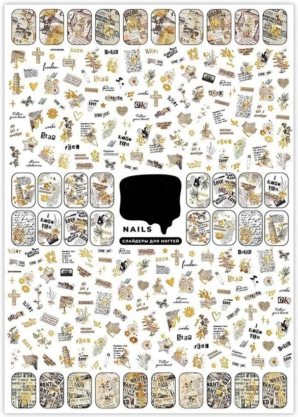 Pink Nails Слайдеры для ногтей «Газетные вырезки»-25% +56