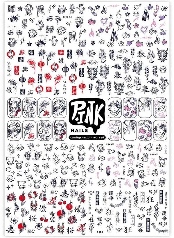 Pink Nails Слайдеры для ногтей «Аниме чёрное»-25% +56