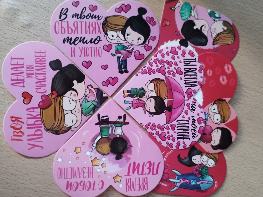 Прикольные валентинки. Много, разные. Качество печати хорошее. Очень понравились.