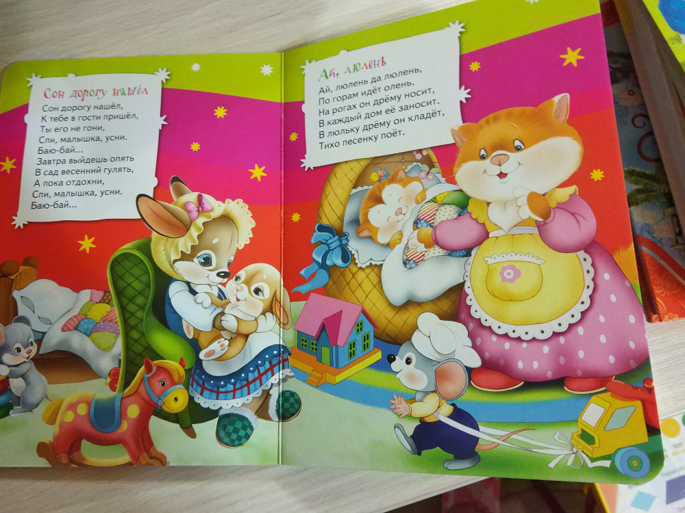 Книжка хорошая, красочная. Но очень тонкая. Совсем мало стихов, всего лишь 5 страничек. Хотелось бы побольше.
