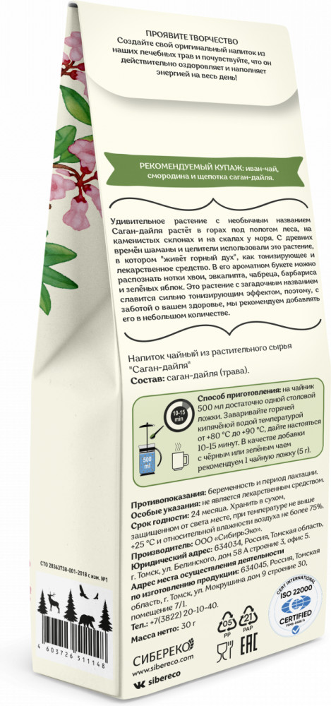 Сибереко Напиток чайный из растительного сырья «Саган-дайля»+85 бодрит вкусный хороший