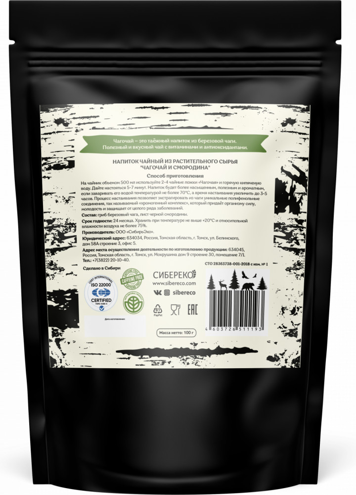 Сибереко Напиток чайный из растительного сырья «Чагочай и смородина»