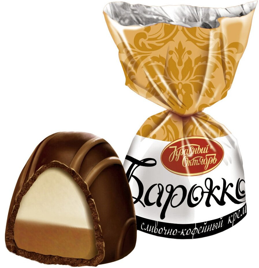 Красный октябрь Конфеты шоколадные «Барокко»В данный момент этот товар отсутствует в продаже. Возможно, у нас найдется аналогичный или похожий товар здесь. Конфеты шоколадные «Барокко», сливочно-кофейный крем — двухслойные конфеты из сливочного желе с нежным сливочно-кофейным вкусом. Конфеты Барокко — это сливочно-кофейный вкус и нежные крупные конфеты куполообразной формы с кремообразной двухслойной начинкой. Легкий сливочный слой с мягким вкусом сочетается с карамельно-кофейным вкусом второго слоя и нежной сладостью шоколадной глазури, покрывающей конфету. |