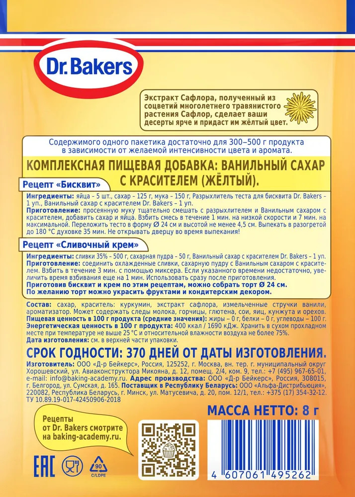 Dr. Bakers Сахар ванильный с красителями, жёлтый+13